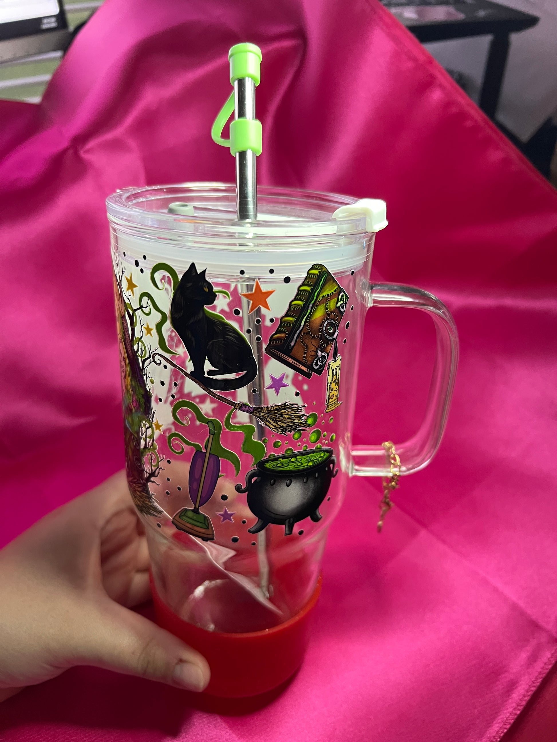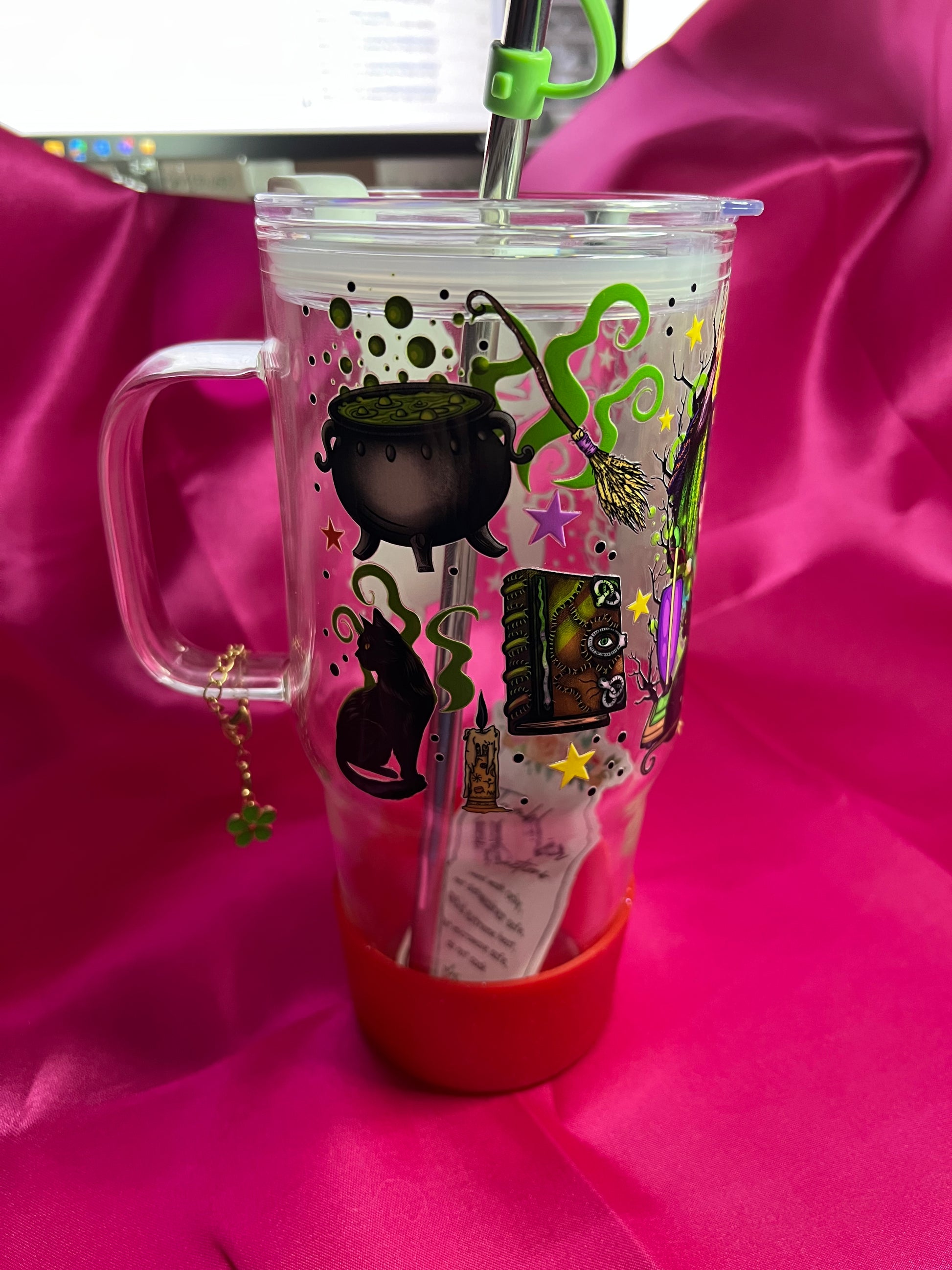 30 oz glass tumbler with silicone boot and handle charm